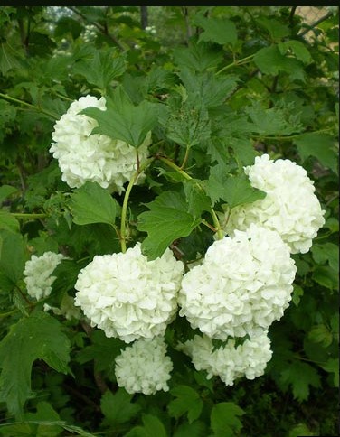 Цветение приходится на июнь и продолжается 2–4 недели. В этот период распускаются плотные «снежки» до 10 см диаметром. Сначала бутоны имеют лёгкий зеленоватый оттенок, затем становятся белоснежными, а к концу цветения приобретают розовый румянец.