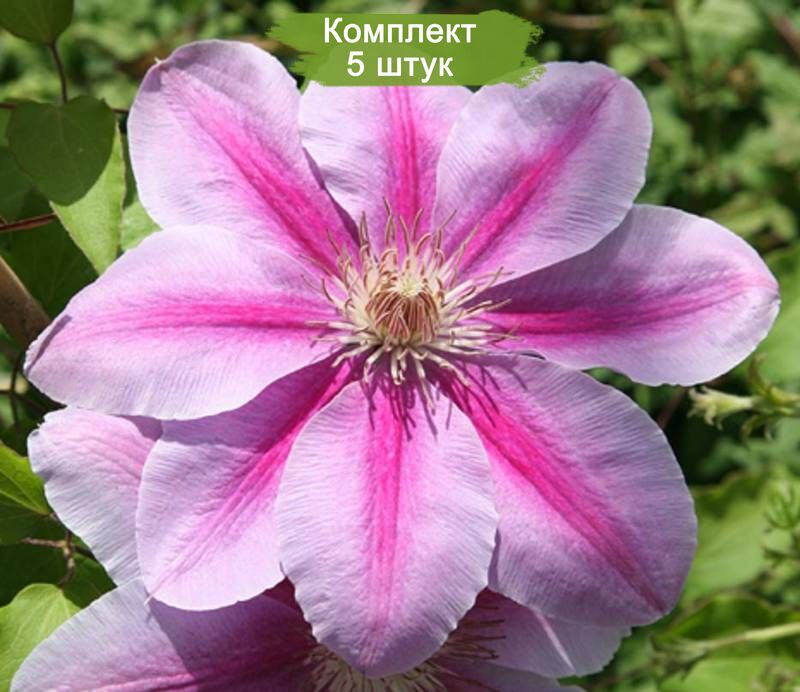 Откройте для себя изысканную красоту клематиса Биз Джубили (Bees Jubilee) с нашими высококачественными саженцами. Этот сорт клематиса славится своими крупными, нежно-розовыми цветками с яркой малиновой полосой по центру каждого лепестка, создавая неповторимый акцент в вашем саду.